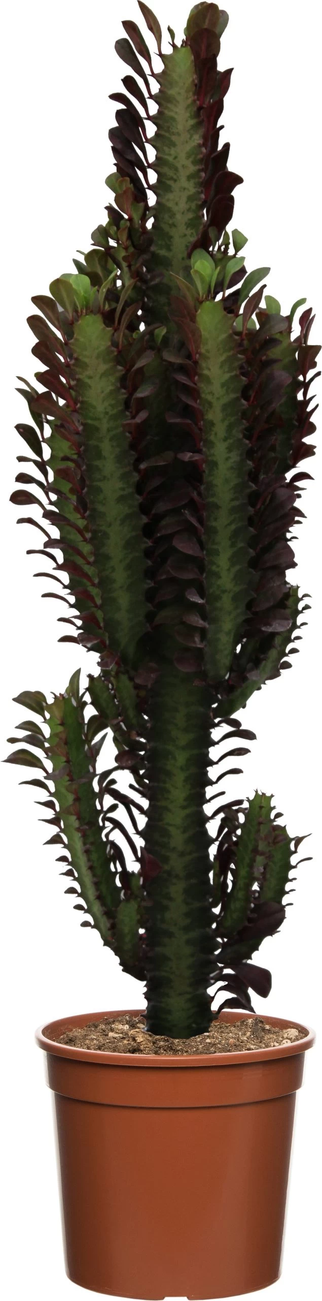 Ze slaan water op in hun stam voor droge tijden. De Euphorbia trigona heeft wit melkachtig vocht, dit vocht is irriterend bij aanraking. Zijn doornen groeien rechtstreeks uit het blad, bij cactussen groeien doornen op een bladkussen of kussenvormig knobbeltje. Deze Afrikaanse Melkboom is het broetje van Cowboycactus en is een stoere en makkelijke plant.Â