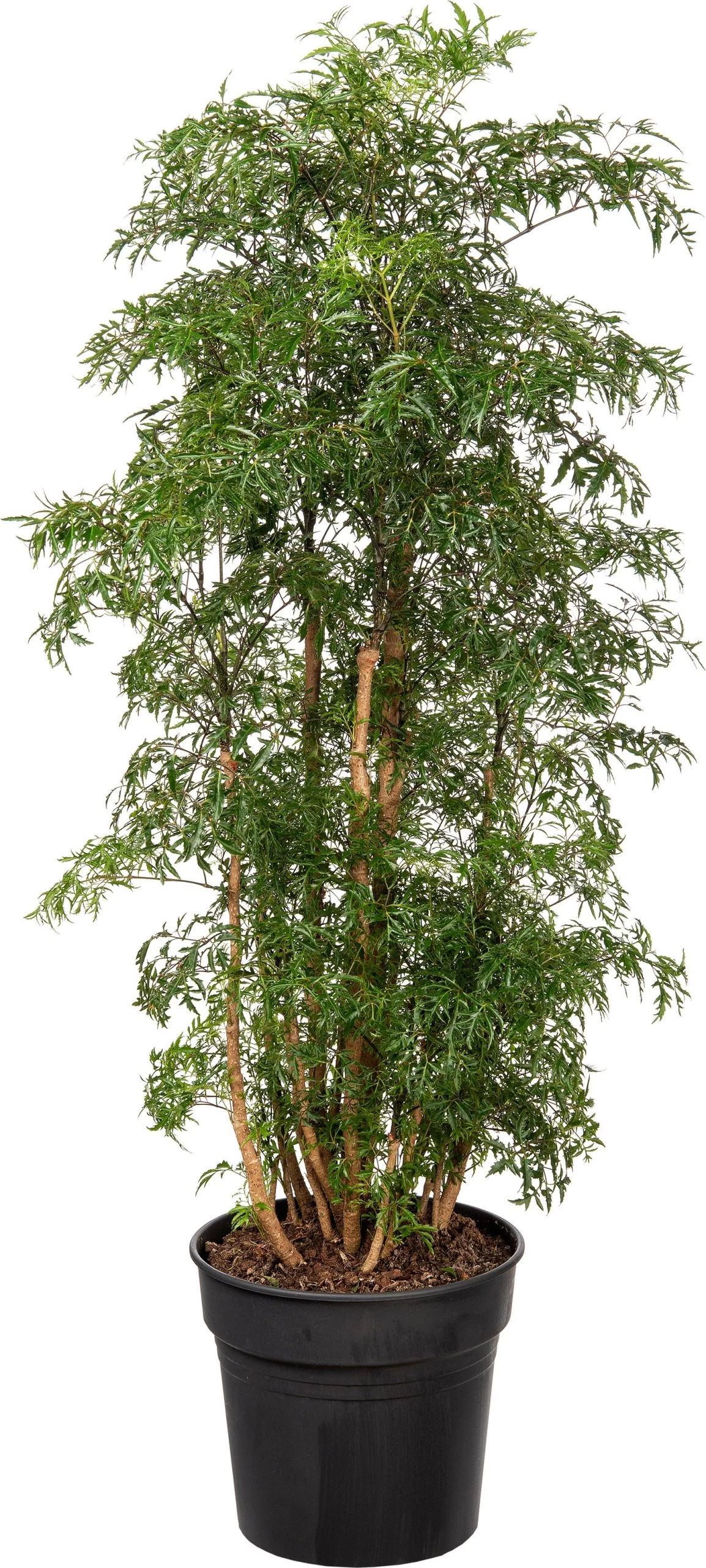 De Polyscias is niet de makkelijkste plant en is gevoelig voor een lage luchtvochtigheid. Sproei daarom de bladeren elke week nat met een plantenspuit en liefst ontkalkt water op kamertemperatuur. Dit voorkomt bladval en aantasting door Spint. In de lente en de zomer kan maandelijks voeding voor groene kamerplanten worden toegevoegd aan het gietwater. Wanneer de pot vol zit met wortels wordt het tijd om de plant over te zetten in een pot die ongeveer 20 % groter is. Vul de pot aan met potgrond en spoel dit goed in. Hou de grond liever wat droger dan te nat en gebruik bij voorkeur regenwater op kamertemperatuur. Snoeien is vrijwel niet nodig.