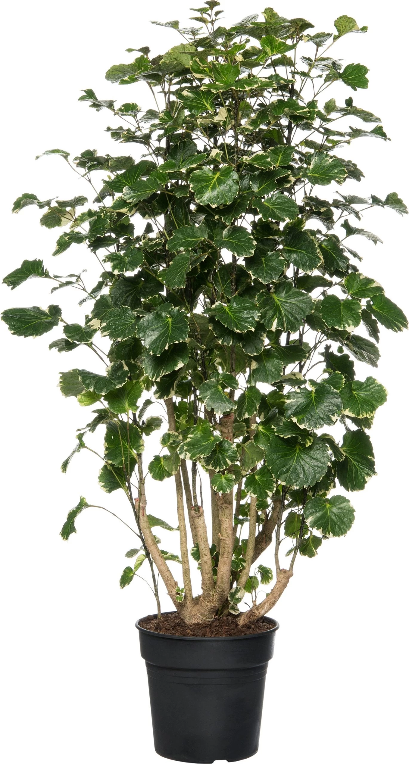 De polyscias is een steeds bekendere plant wordt in verschillende formaten en soorten verkocht. De meeste bekende is de ‘Fabian’met rond donkergroen bijna paars blad. Deze ‘Balfouriana’ heeft witbont blad met vele verscheidenheden van bladvormen.