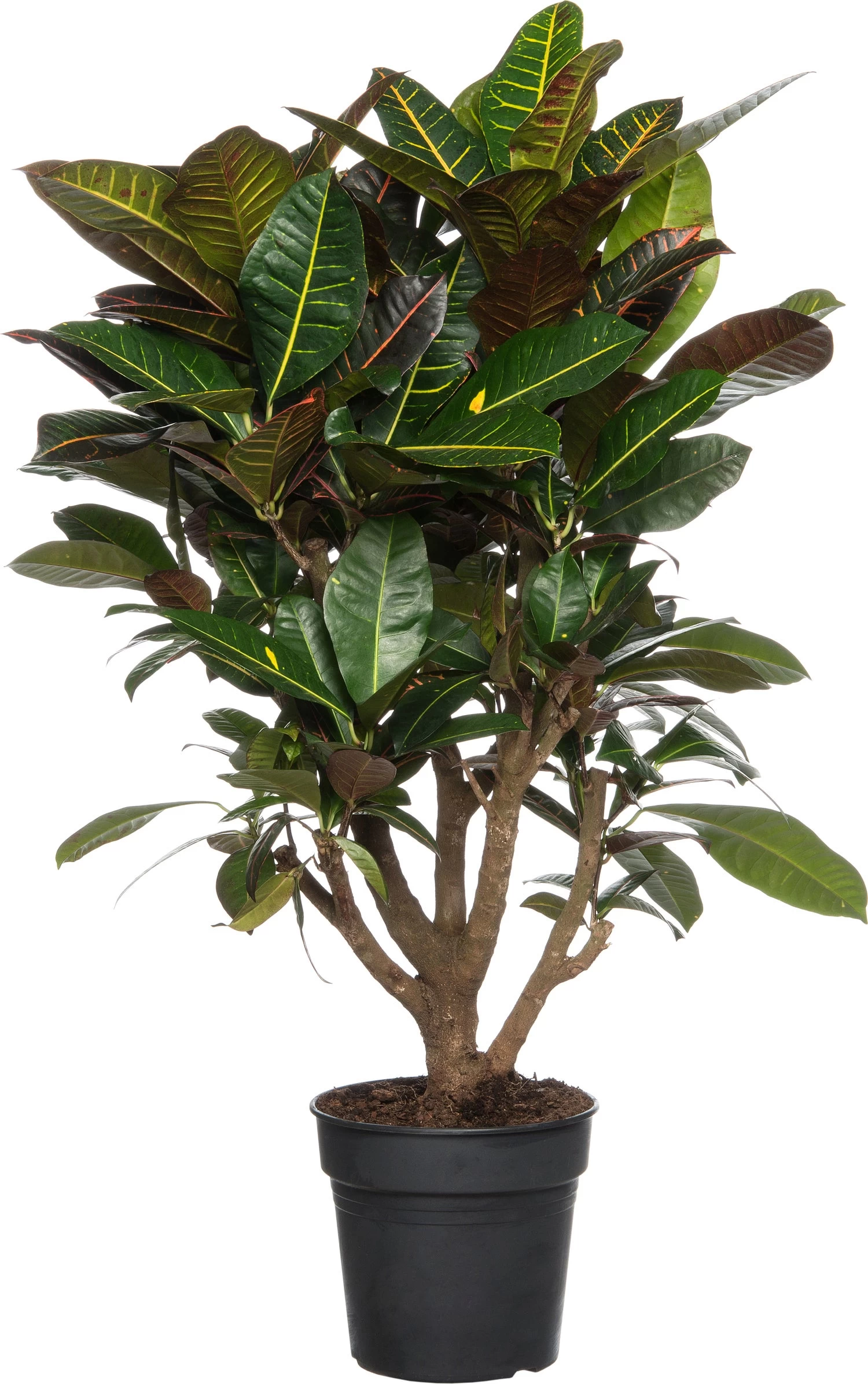 Codiaeum of bij ons Croton komt uit het Zuid-Oosten van Azië waar deze plant als hoge bomen/ struiken voorkomen.