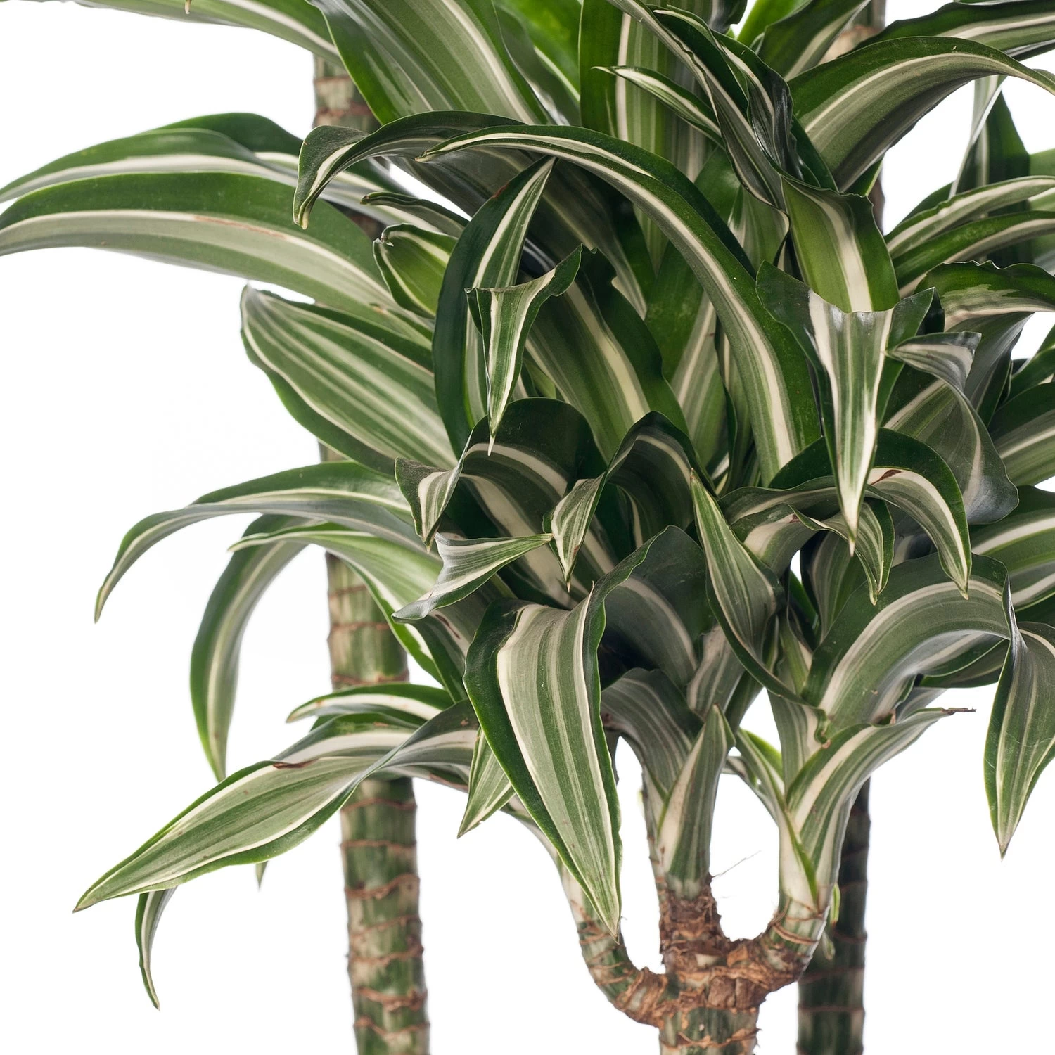 De Dracaena’s zijn populaire kamerplanten die erg makkelijk in het onderhoud zijn. Ze kunnen daarnaast enorm oud worden waardoor je lang plezier hebt van deze leuke bladplant. De Dracaena fragrans heeft zijn naam, fragrans, vanwege zijn heerlijk geurende bloemen. Echter zal hij deze zelden vormen in de huiskamer. Enkel oudere planten kunnen bloemen gaan vormen binnenshuis. De Dracaena staat graag op een lichte standplaats, maar verdraagt ook wat meer schaduw. De Draecena fragrans (D) ‘Jade Jewel’ heeft groen, wit gestreepte bladeren.