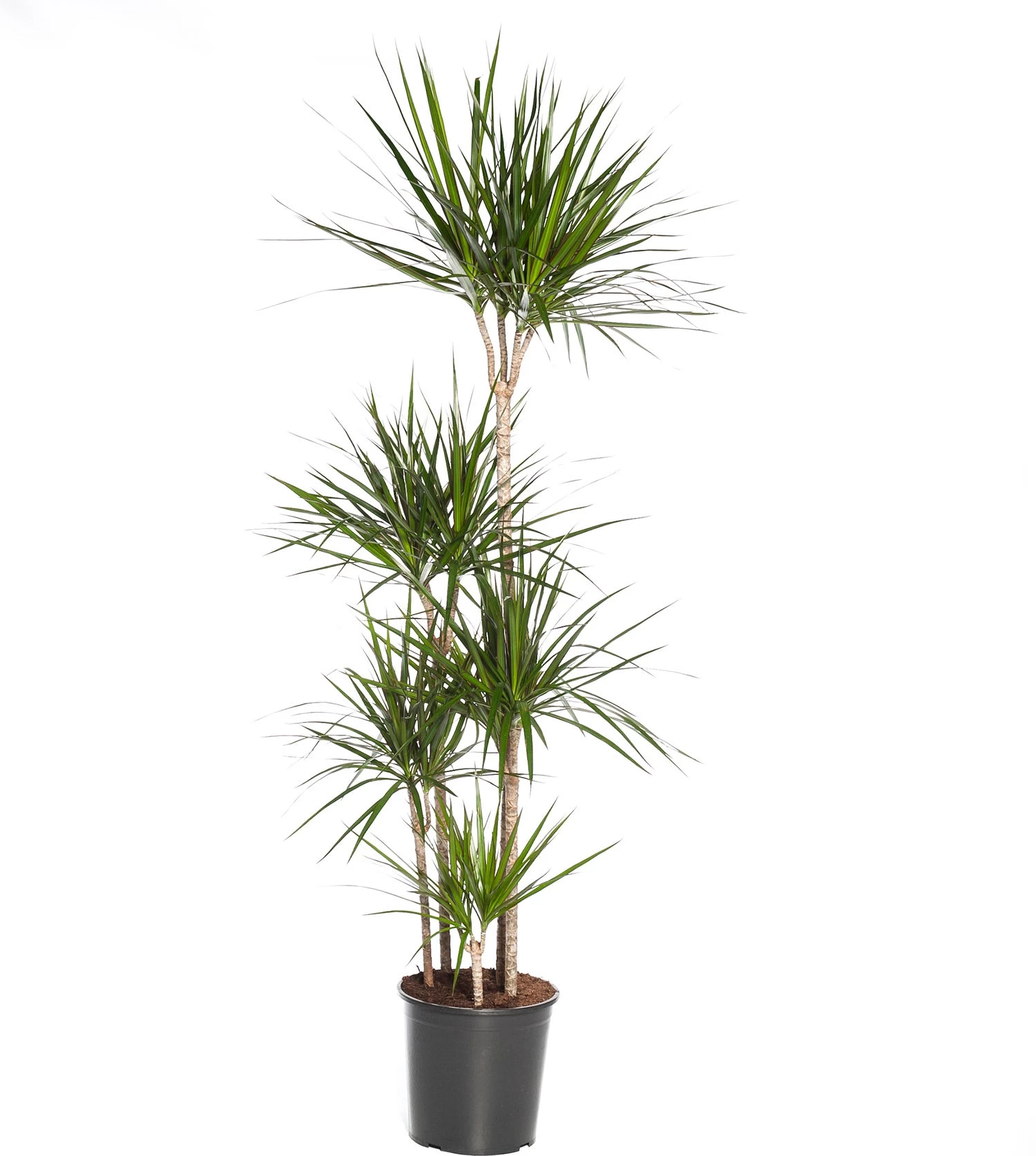 De Dracaena’s zijn populaire kamerplanten die erg makkelijk in het onderhoud zijn. Ze kunnen daarnaast enorm oud worden waardoor je lang plezier hebt van deze leuke bladplant. De Dracaena fragrans heeft zijn naam, fragrans, vanwege zijn heerlijk geurende bloemen. Echter zal hij deze zelden vormen in de huiskamer. Enkel oudere planten kunnen bloemen gaan vormen binnenshuis. De Dracaena staat graag op een lichte standplaats, maar verdraagt ook wat meer schaduw. De Draecena marginata heeft smal lancetvormig blad. Het blad is donkergroen met een bruinrode rand aan de buitenzijde. De marginata heeft een luchtzuiverende werking, in mindere mate draagt hij bij aan de luchtvochtigheid. Hij is wel goed in het verwijderen van ongezonde stoffen.