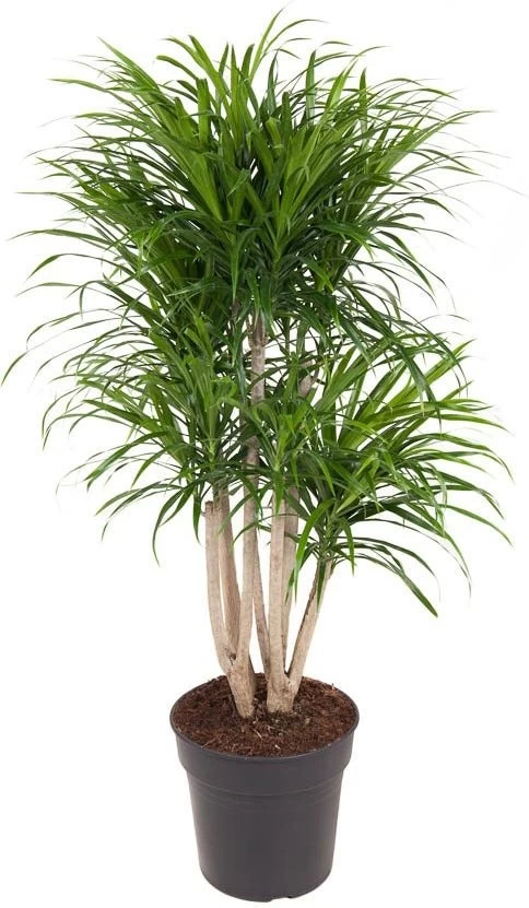De Dracaena’s zijn populaire kamerplanten die erg makkelijk in het onderhoud zijn. Ze kunnen daarnaast enorm oud worden waardoor je lang plezier hebt van deze leuke bladplant. De Dracaena staat graag op een lichte standplaats, maar verdraagt ook wat meer schaduw. Dit specifieke soort heeft smal maar kort blad in het fris tot donker groen.
