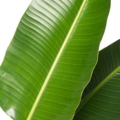 Het is een stamloze plant met lange bladeren (30-40cm) die aan de onderkant smal zijn en bovenaan breed uitlopen. In de zomer kan hij prima buiten staan op je terras. De Strelitzia heeft 2 bekende soorten, de nicolai en de reginae, waarvan de Strelitzia reginae de mooiste en meeste bloemen aanmaakt. Het blad van de nicolai is ronder en egaler van kleur maar zal niet snel bloeien.