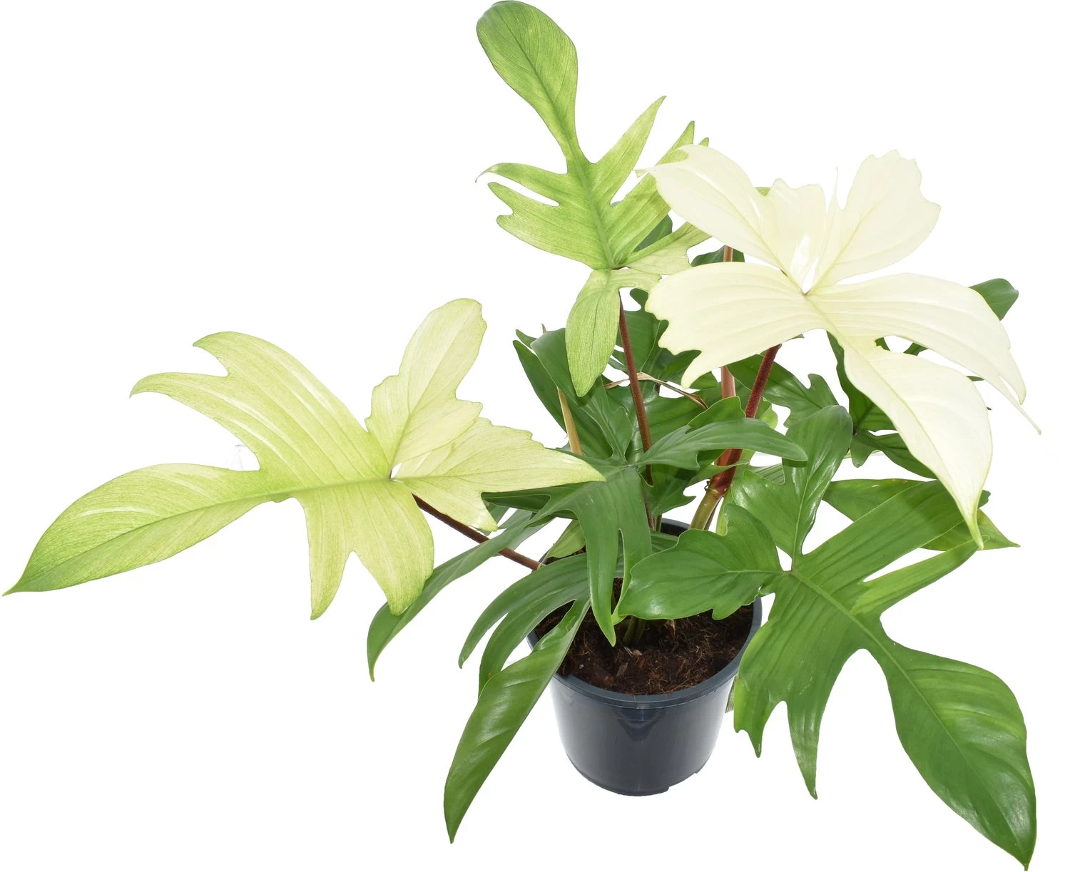 De familie van de Philodendron breidt maar uit en uit. Er zijn tegenwoordig vele soorten en varianten op de markt. De plant is familie van de aronskelkachtigen. De plant komt niet snel in bloei maar dan zie je pas de vergelijking met andere soorten binnen deze grote familie. Het sap van deze plant is giftig voor mens en dieren. Zorg ervoor dat je handschoenen aan doet als je met deze plant aan de slag gaat en zorg ervoor dat hij buiten bereik staat van huisdieren. Deze Philodendron heeft puntig blad en heeft groene bladeren en witte bladeren en combinaties van deze; van licht tot donker groen. Officieel een klim soort, maar deze plant groeit langzaam.