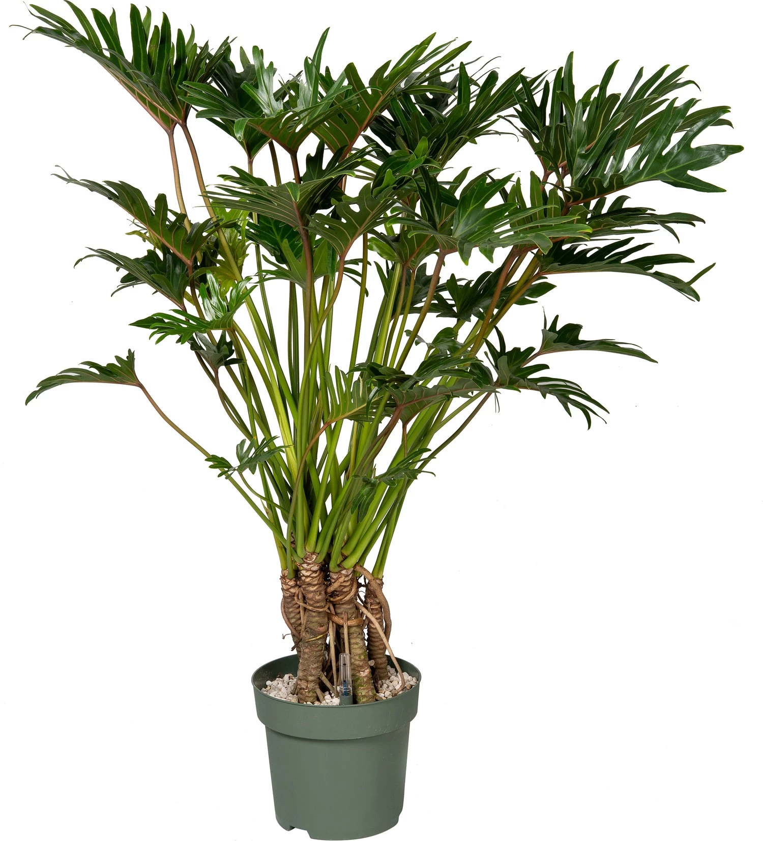 Philodendron ‘Xantal’ is een grootbladige kamerplant die het mooist tot zijn recht komt als hij de ruimte krijgt. Na aankoop gaan de glanzende groene bladeren nog wat wijder uit staan. Wanneer de plant teveel water krijgt kan er een druppel aan het uiteinde van de bladeren ontstaan. De volwassen bladeren hebben een sierlijke, ingesneden vorm. De stam heeft veel sierwaarde en is ontstaan doordat oude bladeren afgevallen zijn. Een plaats die niet zonnig is, dat blijft voor deze sterke plant het beste.