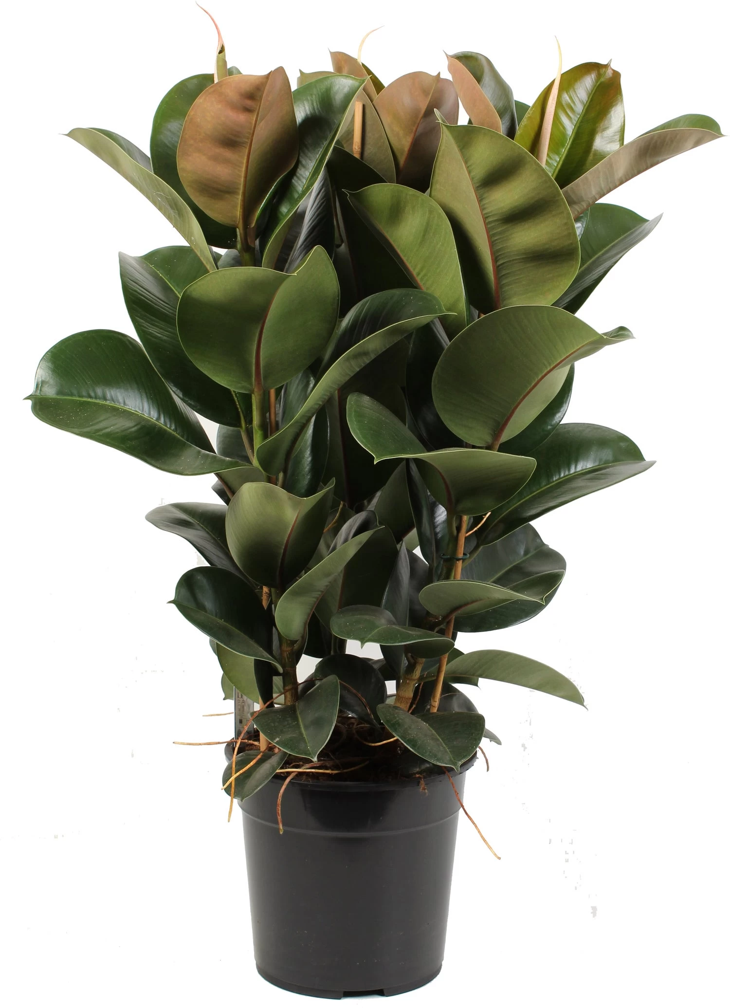 De elasica soorten binnen de grote familie van de Ficus hebben grote ovale bladeren in verschillende kleuren. In de natuur kan deze boom enorm worden, wel 30 tot 40 meter, en dat kan je ook merken in huis. De rustige groei gaat wel door en door! Het is een fijne plant met een luxe uitstraling. Dit specifieke soort heeft donkergroen en iets kleiner blad.