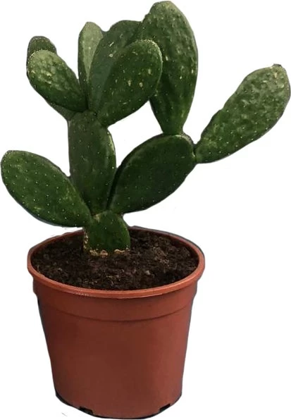Door de vlakke vorm van de plant is deze schijfcactus een opvallende verschijning. Een andere naam voor deze cactus is Vijgcactus. Dit heeft te maken met de vijgvormige vruchten die deze cactus aanmaken na een mooie bloei. De vruchten zijn alleen in het wild of speciaal geteelde soorten eetbaar. Als plant het goed naar zijn zin heeft zullen nieuwe schijven boven op ontstaan. Pas op voor de kleine pluisjes aan de zijkant van de platte kanten, hier zitten de stekels in verstopt.