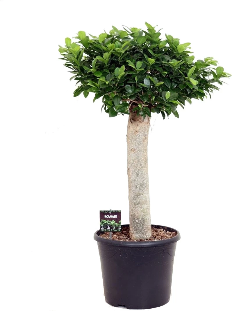 De Ficus houdt niet van kou en heeft het het meest naar zijn zin bij een contstante temperatuur. De Ficus microcarpa is een Oosterse schoonheid. Hij groeit in het zuiden van China en Maleisië. Het bijzondere van deze plant zijn de luchtwortels die hij vormt, deze hangen naar beneden en als ze de grond raken verhouten ze. Dit geeft de Ficus microcarpa zijn bijzondere uiterlijk. Dit specifieke soort heeft wat ovaler blad dan bijvoorbeeld de ‘Ginseng’.