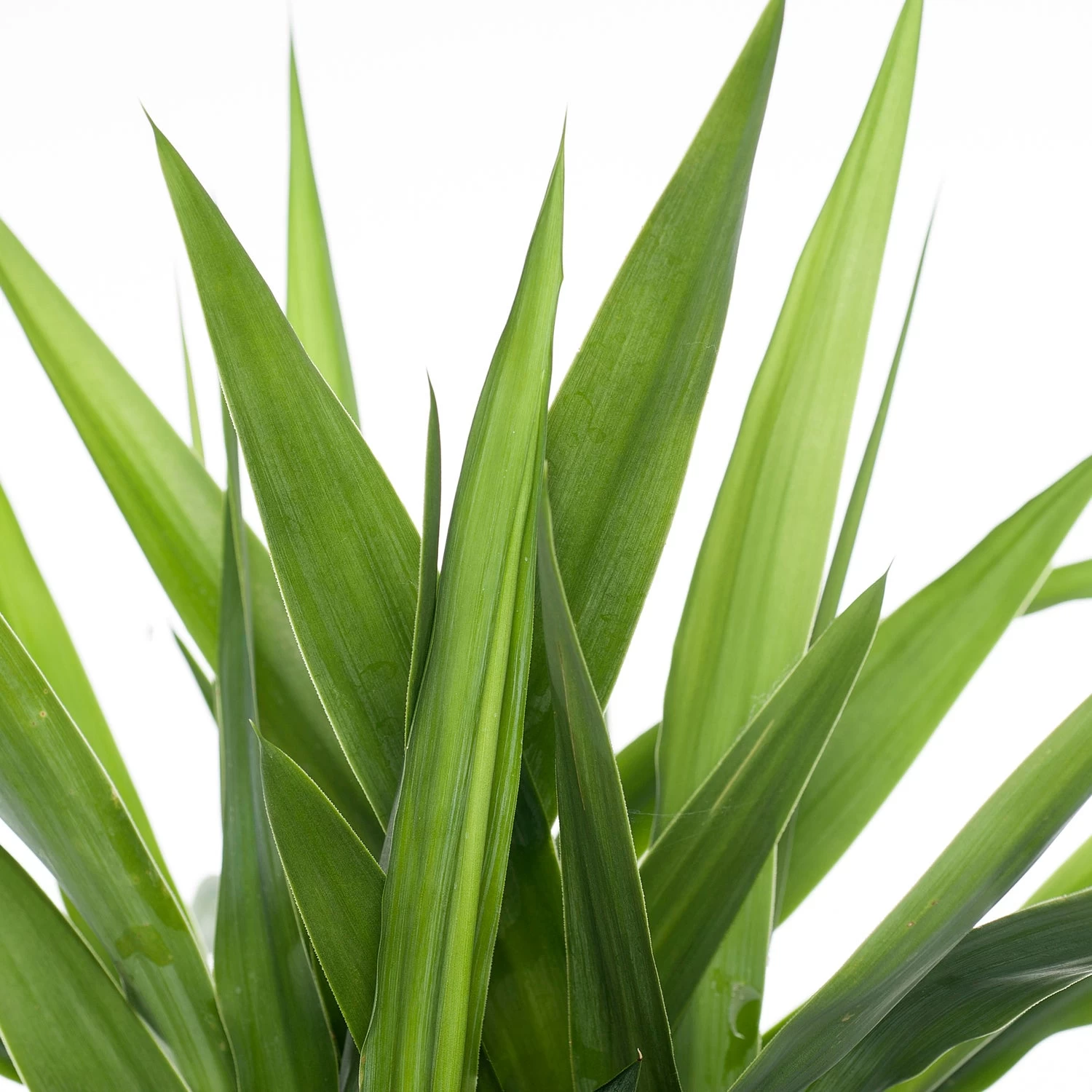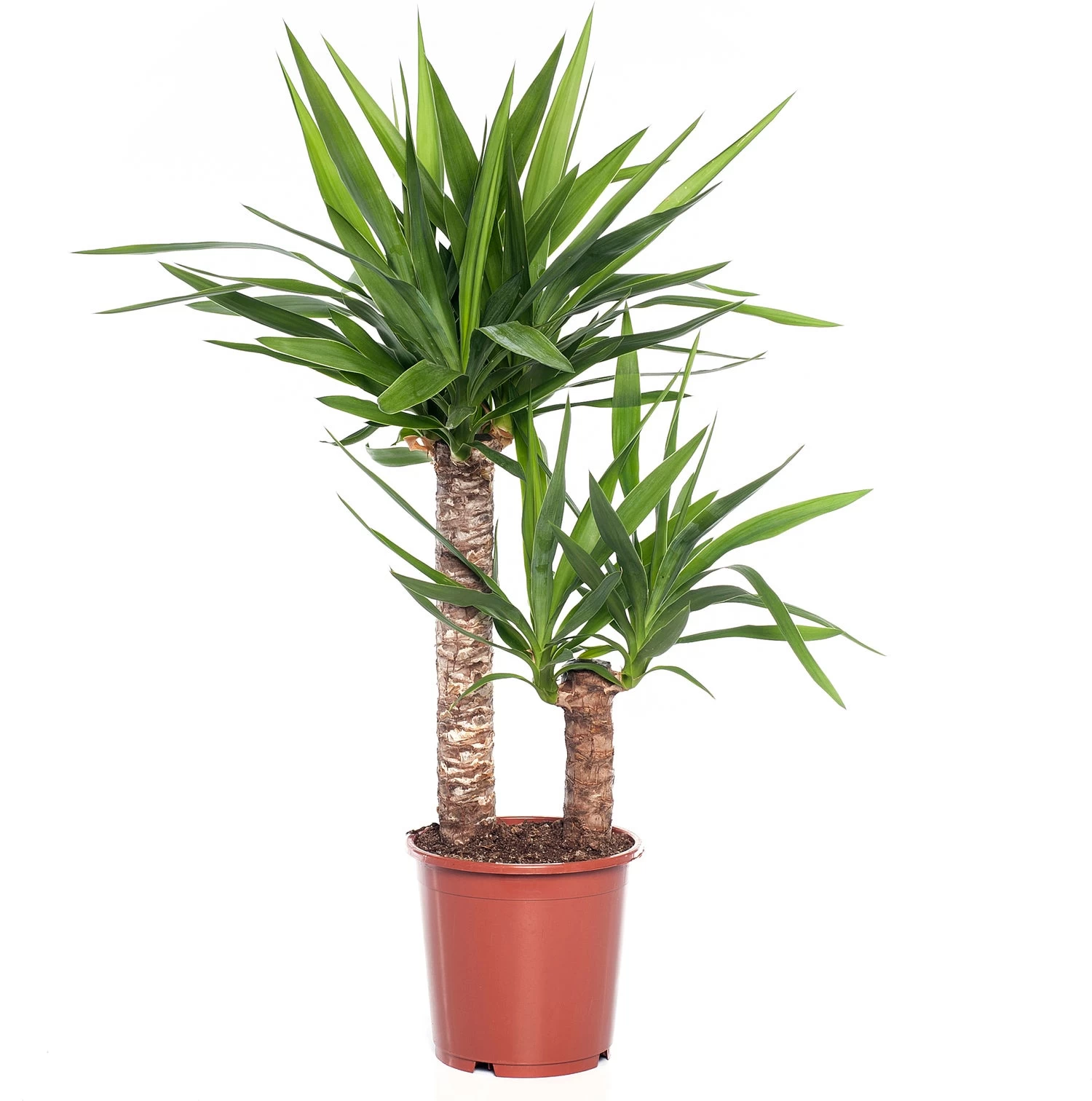 Ze hebben lange smalle bladeren en zijn te vinden met stam of zonder stam. In de natuur bloeien ze in prachtige trossen witte bloemen, in de huiskamer doen ze dit vaak niet. Bij ons is hij een prachtige stoere bladplant voor binnen die tegen een stootje kan. Een Yucca vormt blad aan de bovenkant van de stam. Hij heeft graag een lichte standplaats en vraagt niet veel water. De Yucca elephantipes kan in de natuur een boom worden van 10 meter hoog. Hij kan bloeien, maar zal dit meestal pas doen als hij wordt ‘verwaarloosd’. Uit nood zal hij dan gaan bloeien om te zorgen voor ‘nakomelingen’.